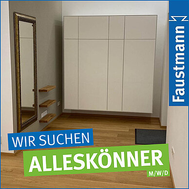 Du siehst wo du gebraucht wirst, scheust dich nicht mit anzupacken und handelst auch ohne das man dich auf die Arbeit zu stupsen musst? Dann komm zu uns, zur Bau- und Möbelschreinerei Faustmann!